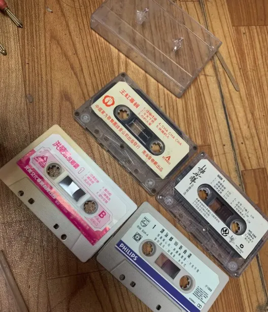 塑料小盒成排,真正的老牌磁带,下学路上哼的小调都藏里面,录音机一塞,带子一转圈,歌不新,心情特专注,现在只剩大抽屉底还藏着这点复古货色,有人一根铅笔夹着转带,这情景一辈子忘不了。
