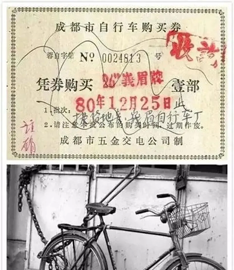 泛黄纸片上印着字,这就是当年家里最重要的自行车购买票据,有了票才能逮着机会把车推回家,爸把车号和票据对起来,“这车以后就咱家的了”,大人脸上那股兴奋劲,现在买车都不用票,票据成了回忆里的身份牌。