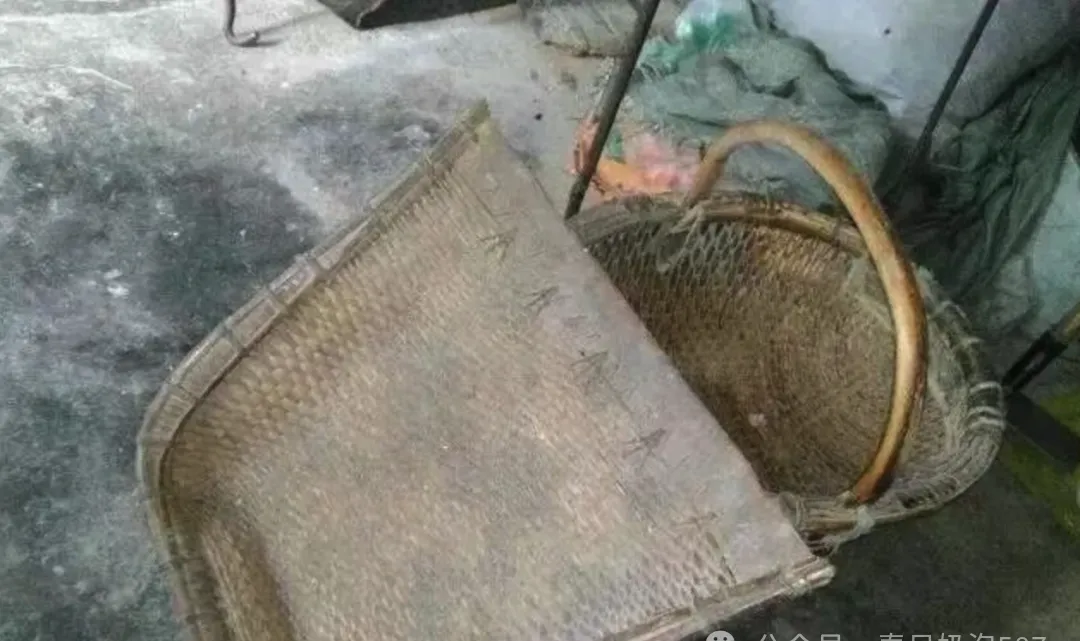 竹条编成的两样,一个叫簸箕,一个叫老竹筐,晒辣椒、磨豆、舂米都得用,夏天一院子人就在这儿摆开,豆子筛进簸箕,猫还爱蹦上去搅和,现在各种新玩意一出来,再见到老簸箕得稀罕一回。