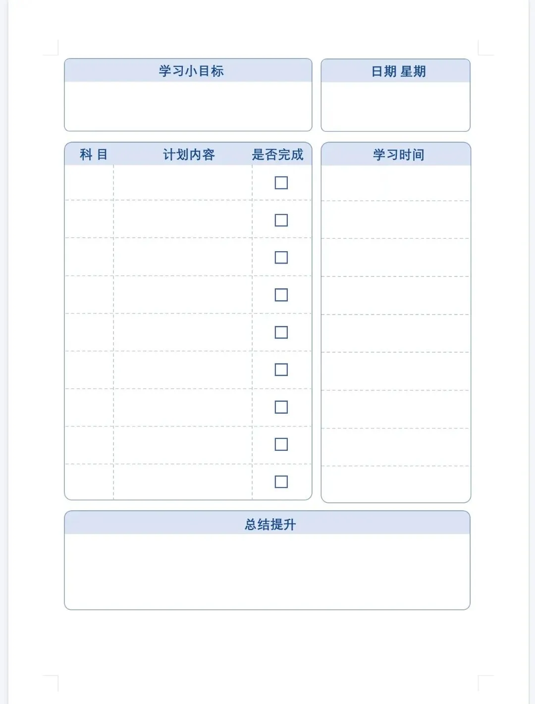 学生常用A4纸打印模板