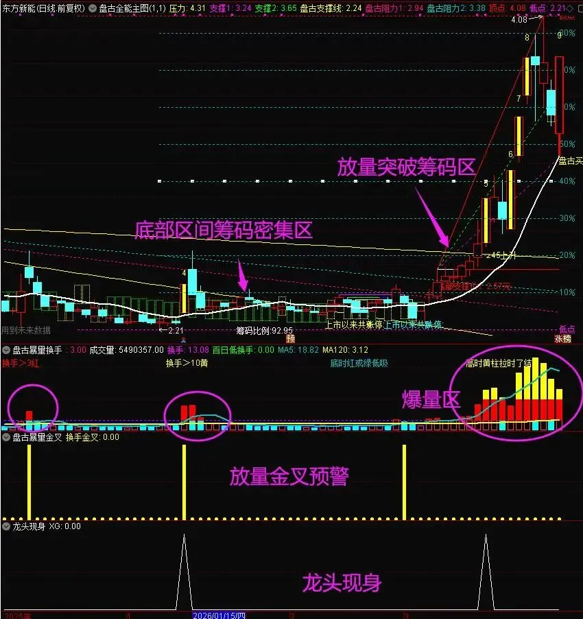 龙头现身:筹码密集区突破 通达信指标源码(XG)