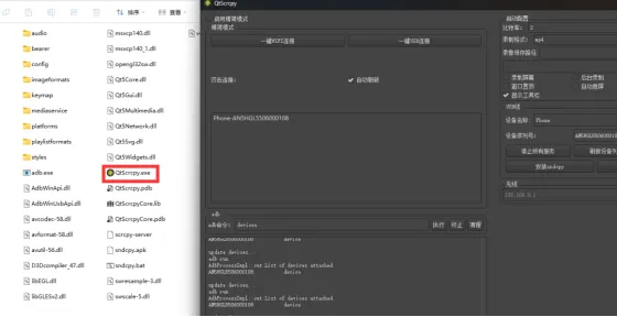 2、USB模式(推荐新手):用数据线连接手机与电脑,打开QtScrcpy,点击“一键USB连接”,手机屏幕立刻同步到电脑窗口,直接用键鼠操控。
