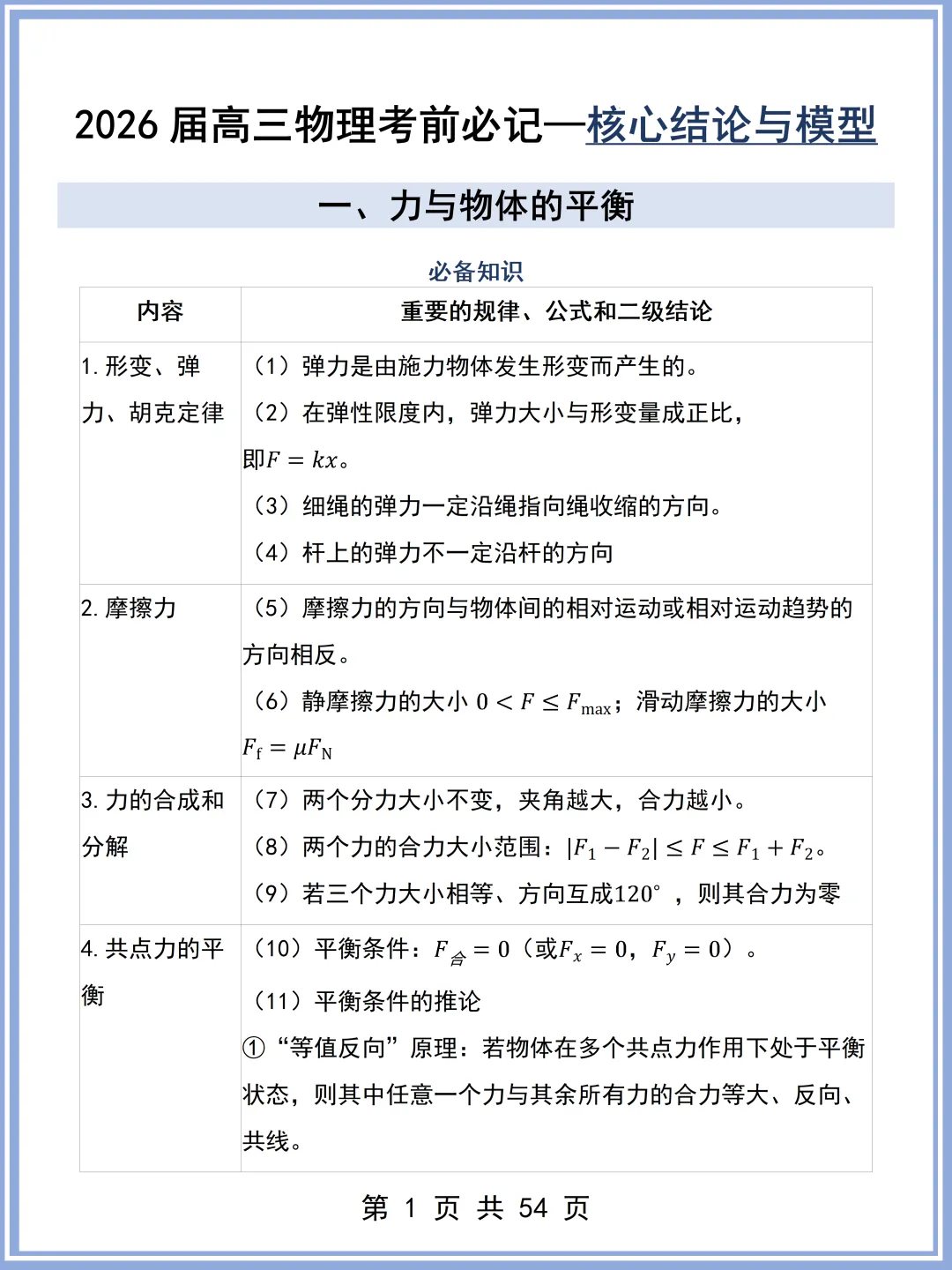 2026最新版:高三物理核心结论与模型(可打印)还不快看!