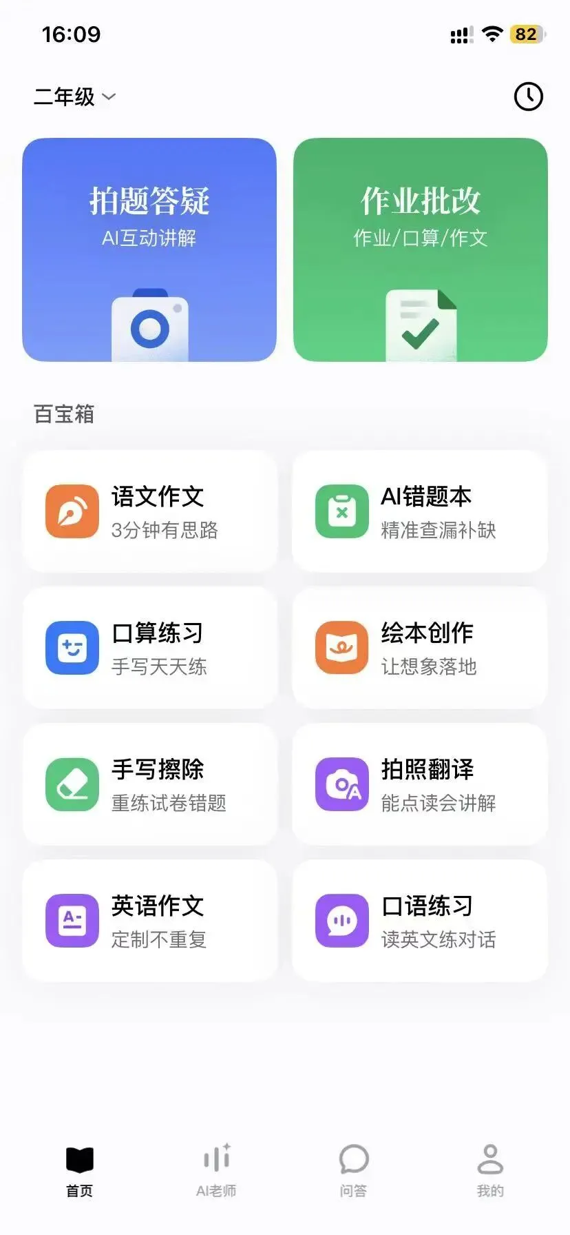 它具有一些基础功能,比如作业帮有的一些功能:拍题答疑、作业批改。
