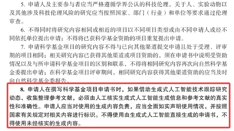 正值2026年国家自然科学基金项目集中申报期,国家自然科学基金发布最新基金申报政策,明确要求项目申报人在撰写项目申报书过程中,如果借助了人工智能生成相关内容,必须要严格核查生成信息及参考文献的真实性、准确性。