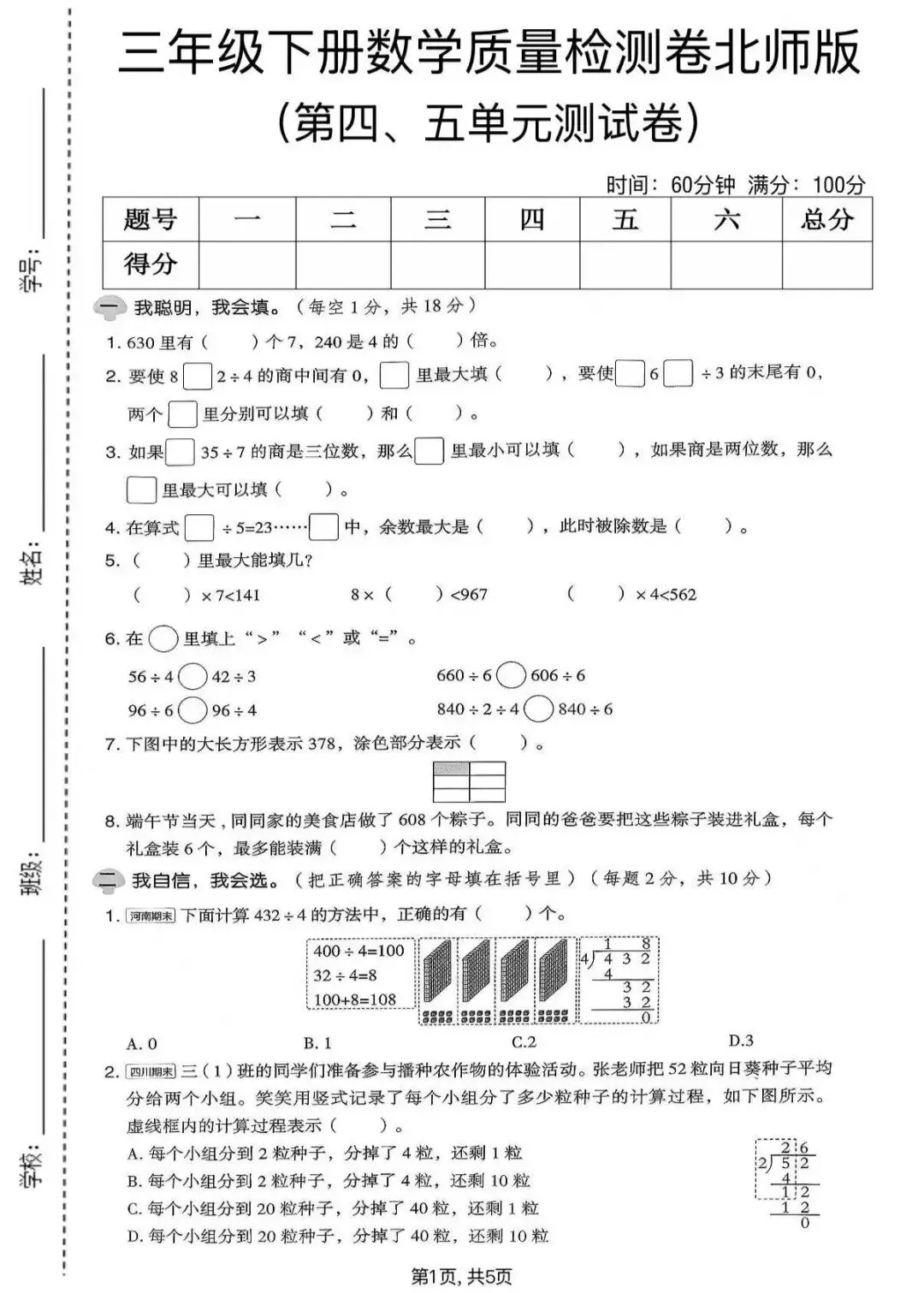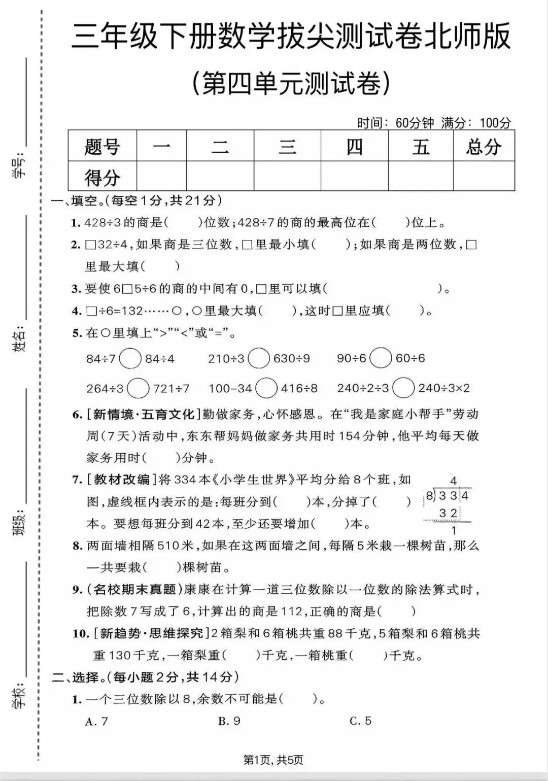 大家好我是白菜学库;今天跟大家分享的是;2026春北师大版三年级下册数学1-7单元《单元检测卷+期中期末检测卷+专项易错卷》(有答案)提供电子版,支持打印和下载。