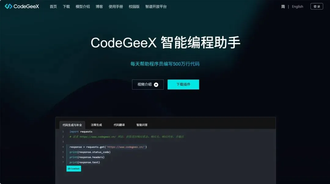CodeGeeX是由清华大学与智谱AI联合研发的多语言AI编程助手,基于130亿参数大模型训练,支持100+编程语言的代码生成、补全与翻译。