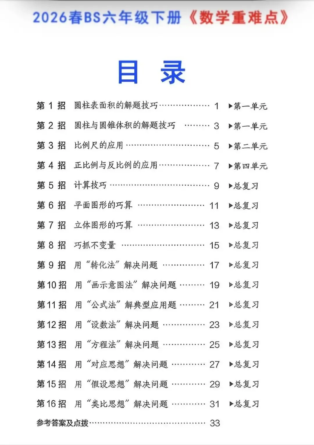 大家好我是提优补差;今天跟大家分享的是;26年六年级数学(下册)北师大版,典型例题系列专项突破训练,冲刺高分一定要给孩子练! 提供电子版,支持打印和下载。