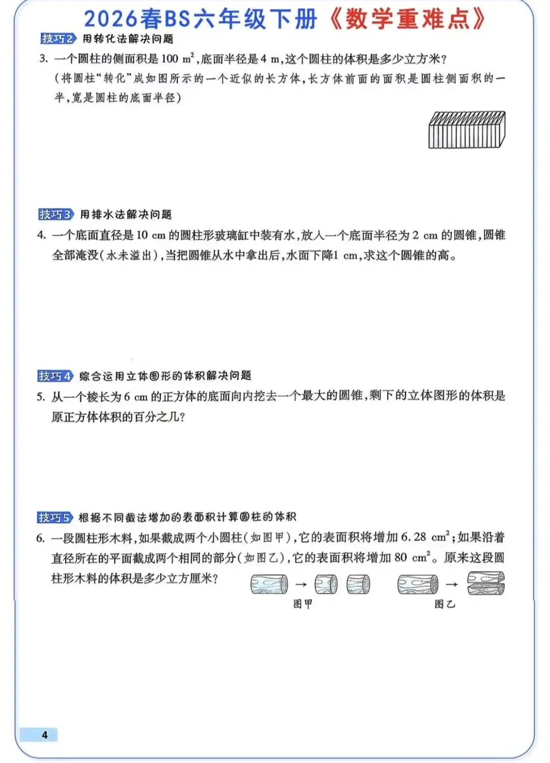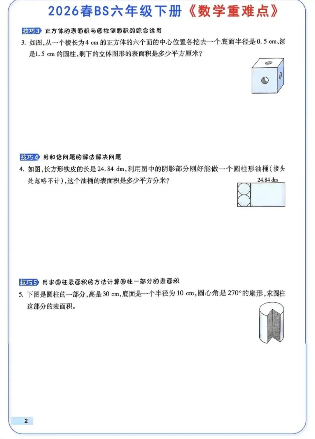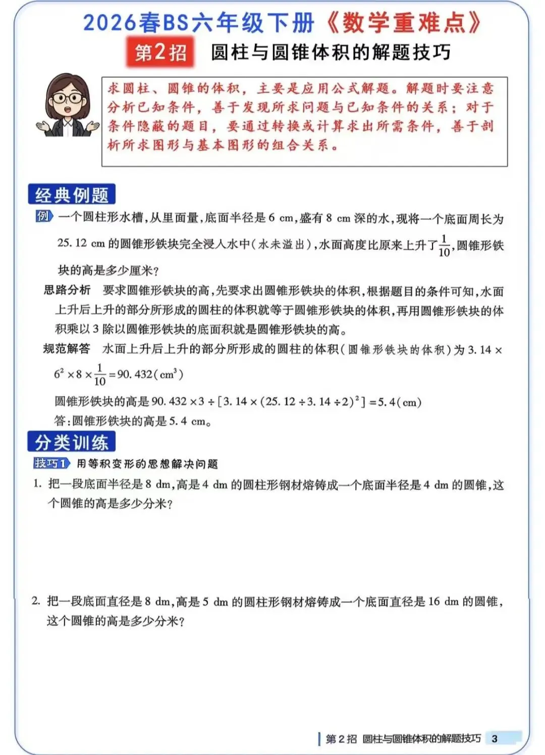 2026年春六年级数学(下册)北师大版,典型例题系列专项突破训练,冲刺高分一定要给孩子练! 完整可打印