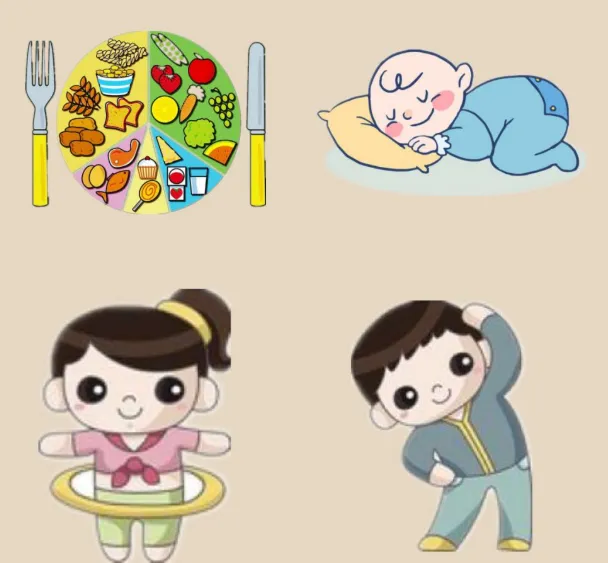 睡眠上,尽量让孩子晚上9点前入睡,保证每晚8-10小时睡眠,因为晚上10点到凌晨2点是生长激素分泌高峰。