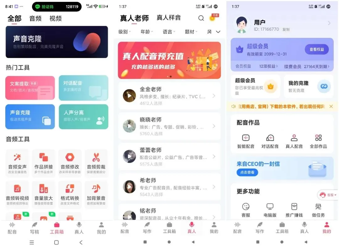 是一款专注于文字转语音的智能语音合成软件,采用强大的语音合成技术,打造简单高效的配音服务平台。拥有近百位不同的主播,支持普通话、英语、粤语、四川话、东北话、湖南话、台湾话等多个音色。更有众多真人广告促销成品录音,一键导出。满足您的配音需求。提示合成失败换个主播音色就行