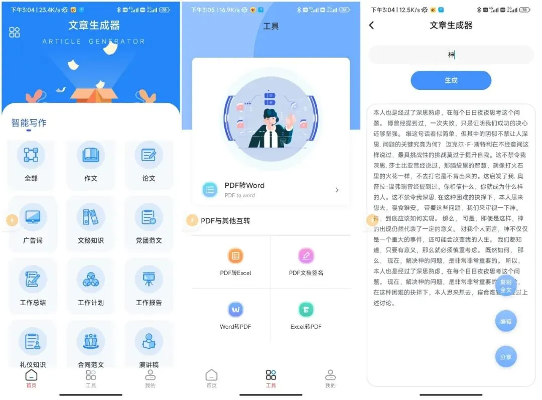 文案生成、自动写作,模拟手写生成器以及其他申请书写作等等,免登陆无限制使用。