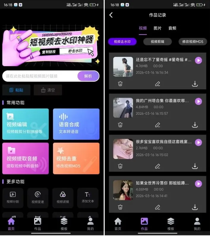 这款免费视频一键去水印APP是短视频创作者的必备工具,免费无广告、多平台解析、功能齐全,不仅能一键去除水印,还支持丰富的剪辑与模板功能,满足从去水印到二次创作的全流程需求,高效又省心