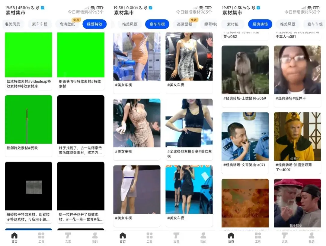 这是是一款一站式创作神器,整合全网高清视频、图片、文案、音效等海量素材,涵盖绿幕、特效、复古、创意等多元风格,热点资源实时更新。界面简洁易操作,适配自媒体、电商、办公等多场景,让创作高效省心,创意快速落地。