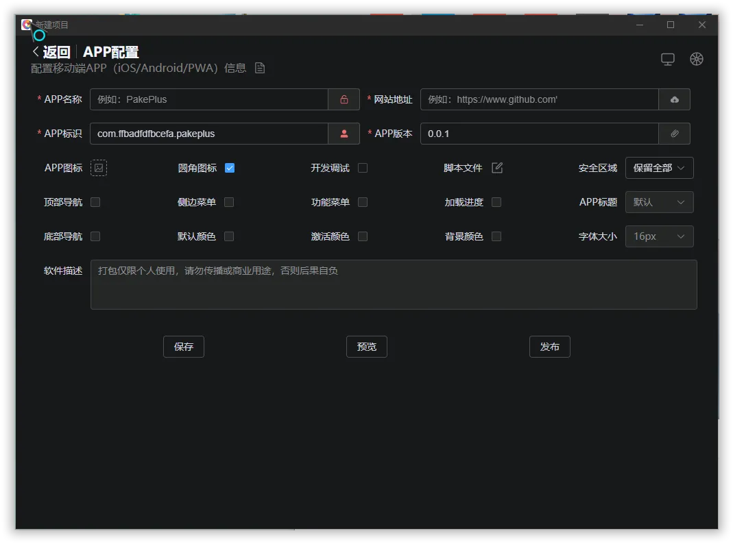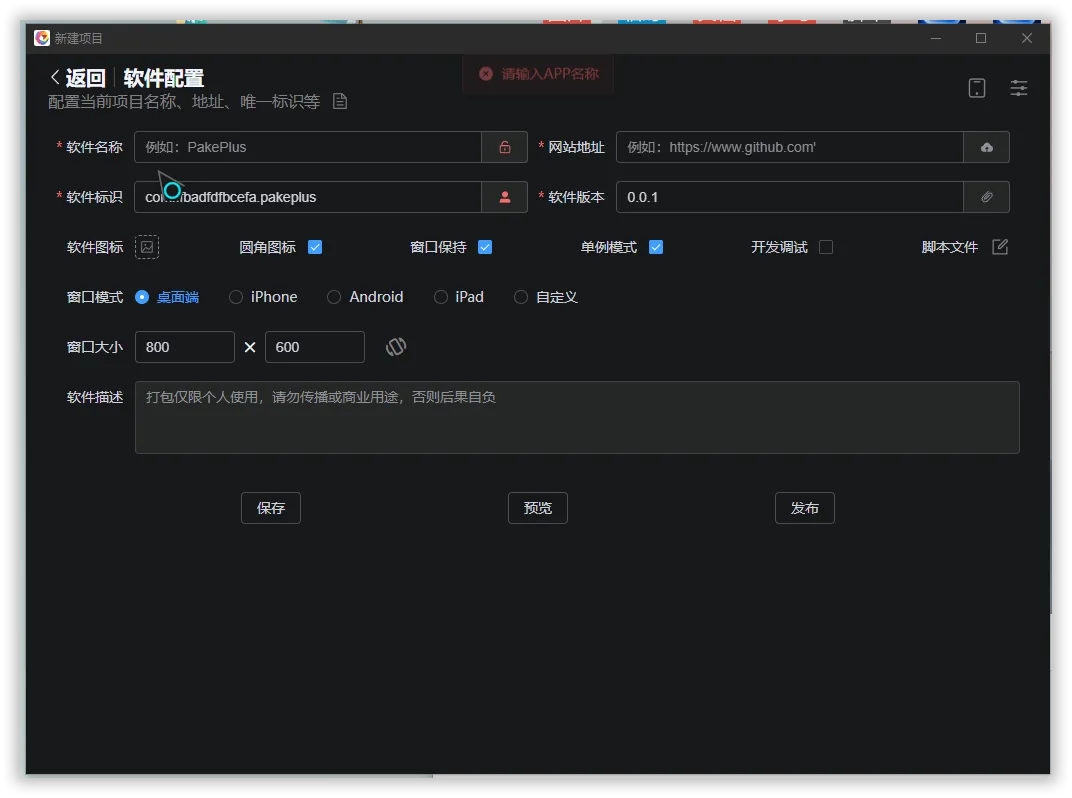 仅仅需要一个Github Token就可以将你的网页或Vue/React等项目打包成一个独立可执行程序,支持Windows/macOS/Linux系统,还支持Android/iOS移动端。打包仅限个人使用,请勿传播或商业用途,打包资源会存储在你自己的Github开源仓库中,任何人都可以看得到,所以请严格遵守Github使用规范,否则后果自负。