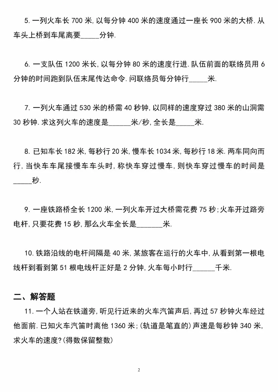 【奥数知识】火车过桥问题(可打印!)