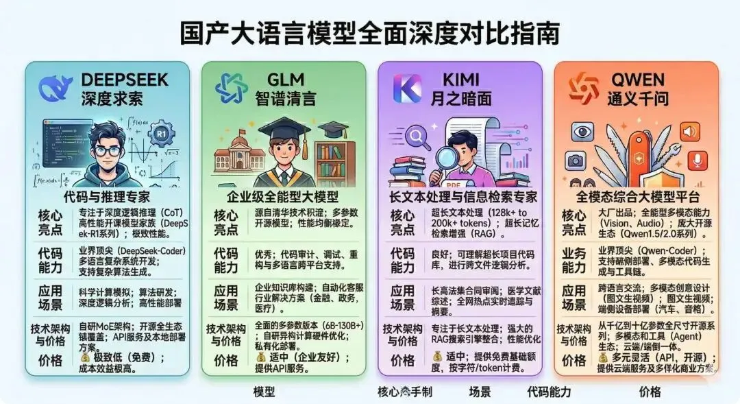 下面是由Gemini生成的一个国产大语言模型对比图: