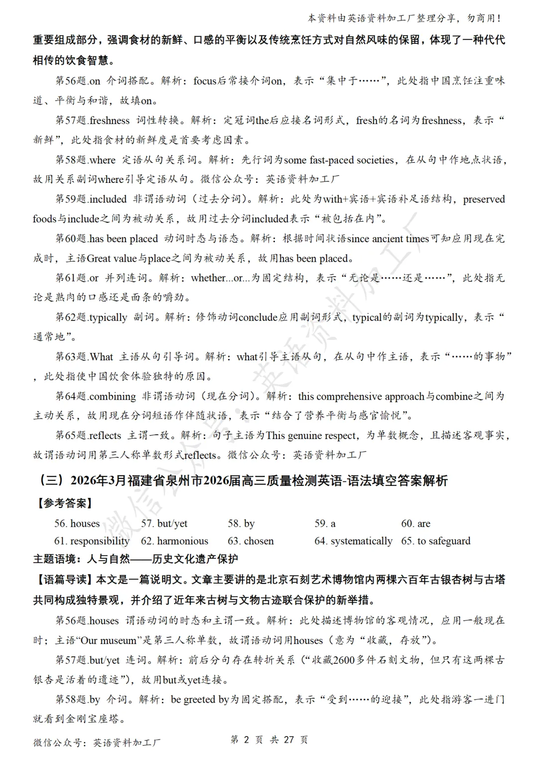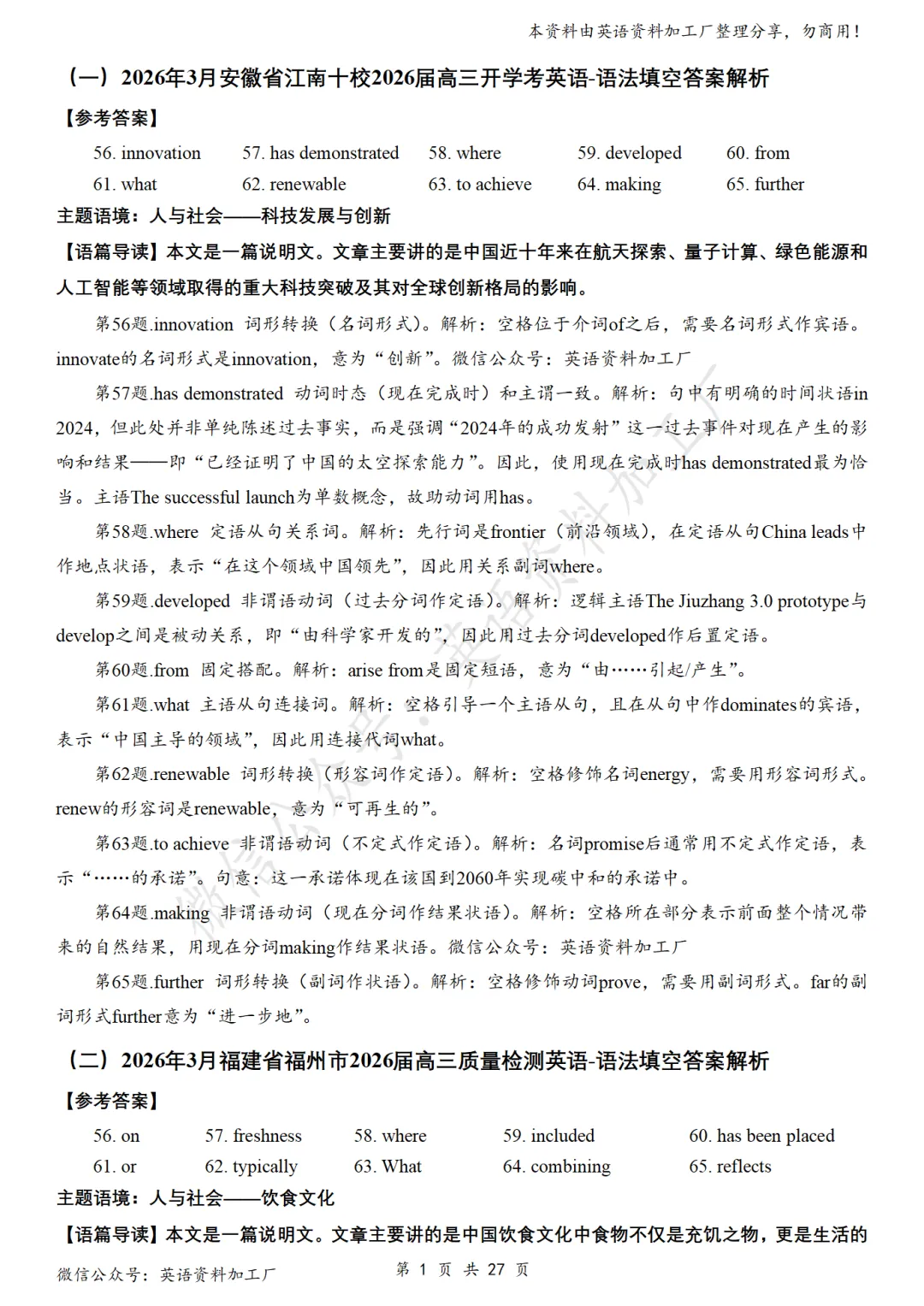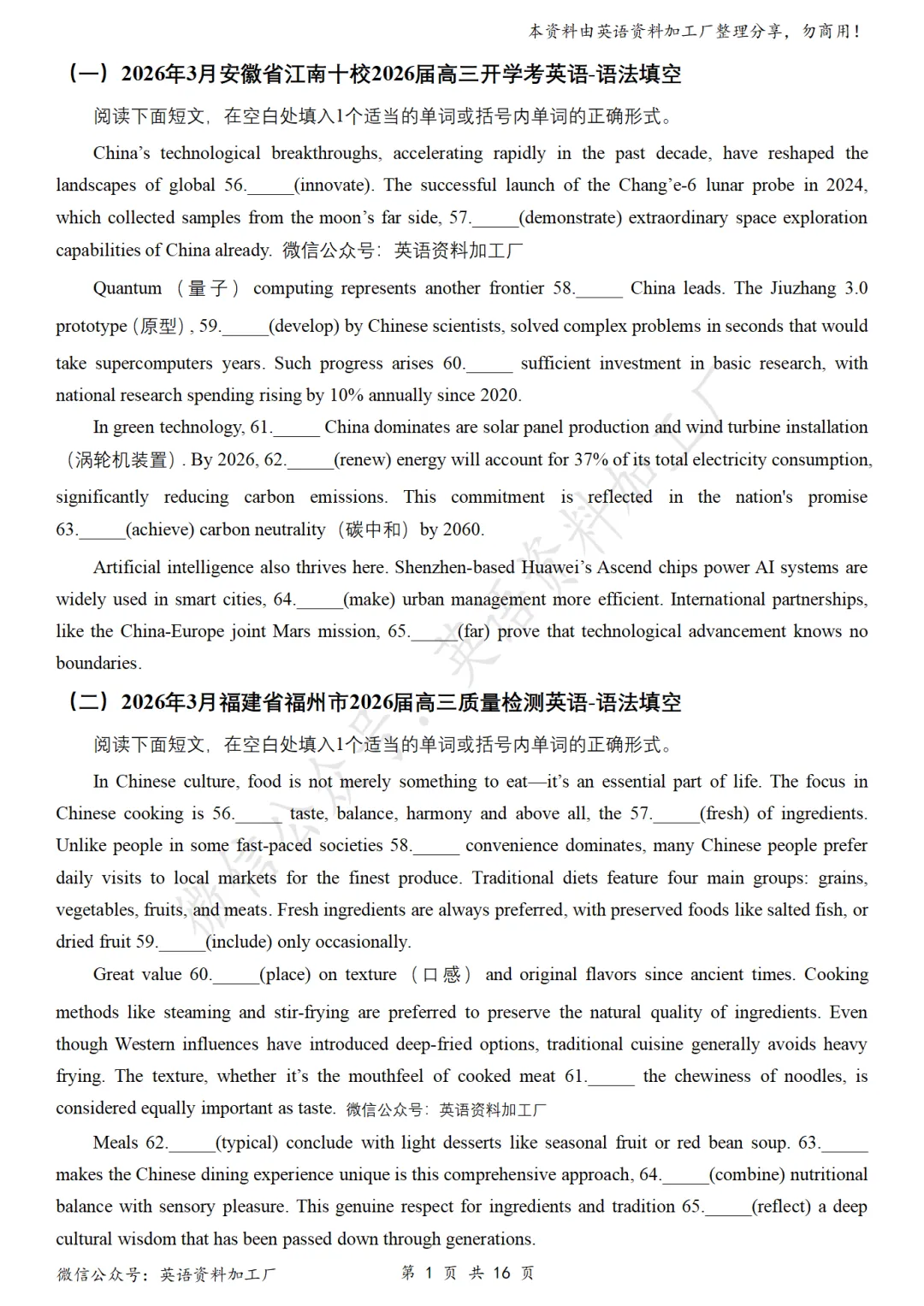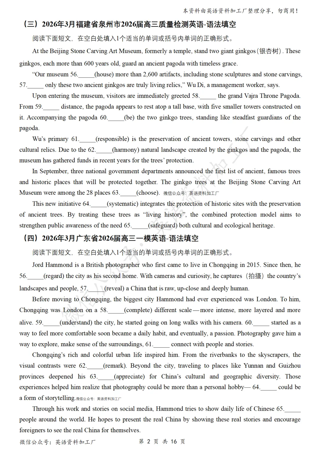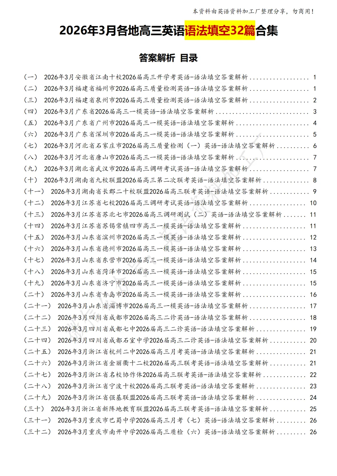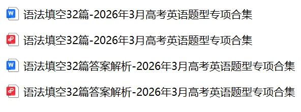【语法填空】免费下载!26年3月各地高三联考/模拟考英语语法填空32篇合集,含答案解析