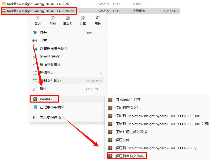 1.选中下载的压缩包,然后鼠标右键选择“解压到当前文件夹”(没有解压选项点这里)