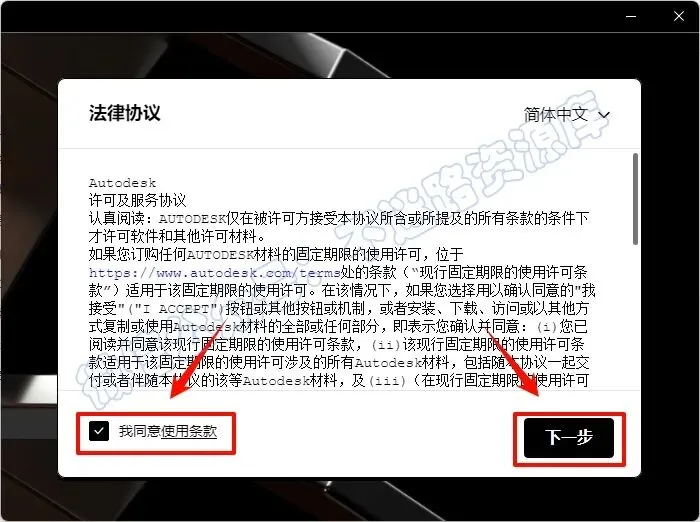 3.勾选“我同意…”,点击“下一步”