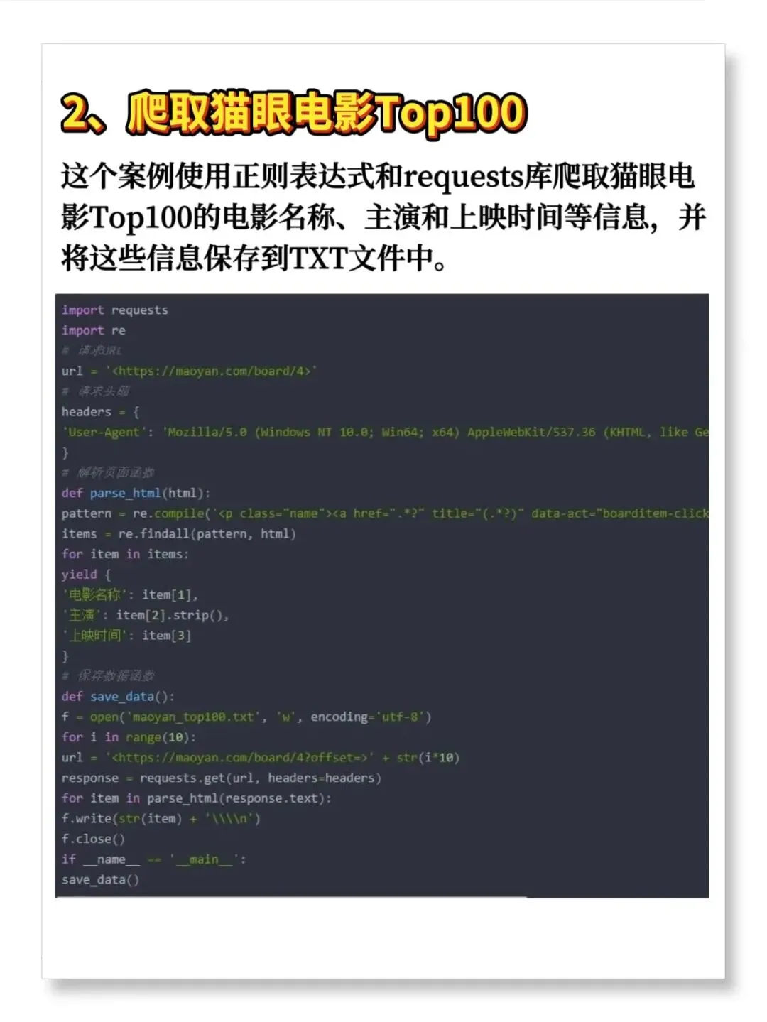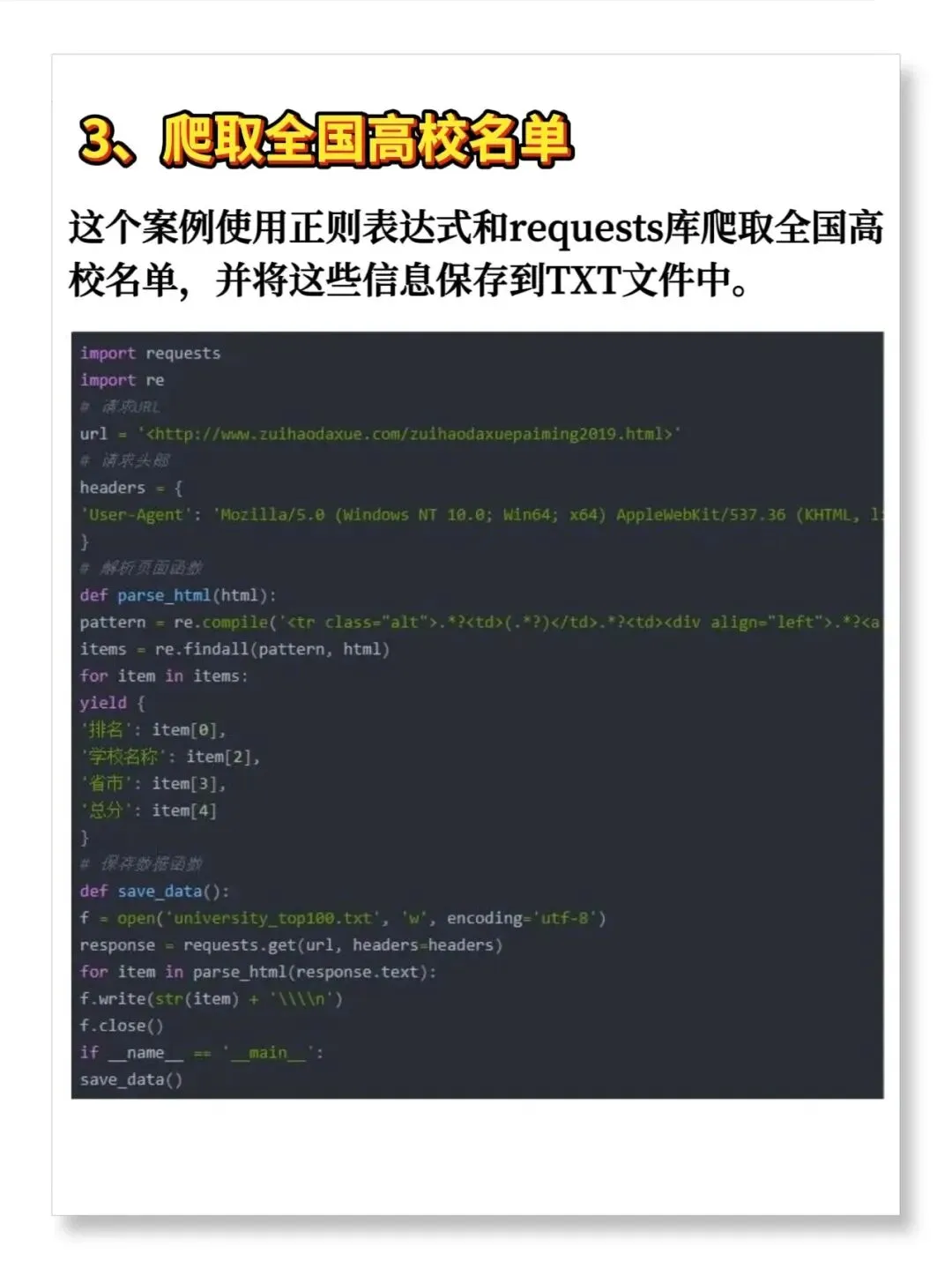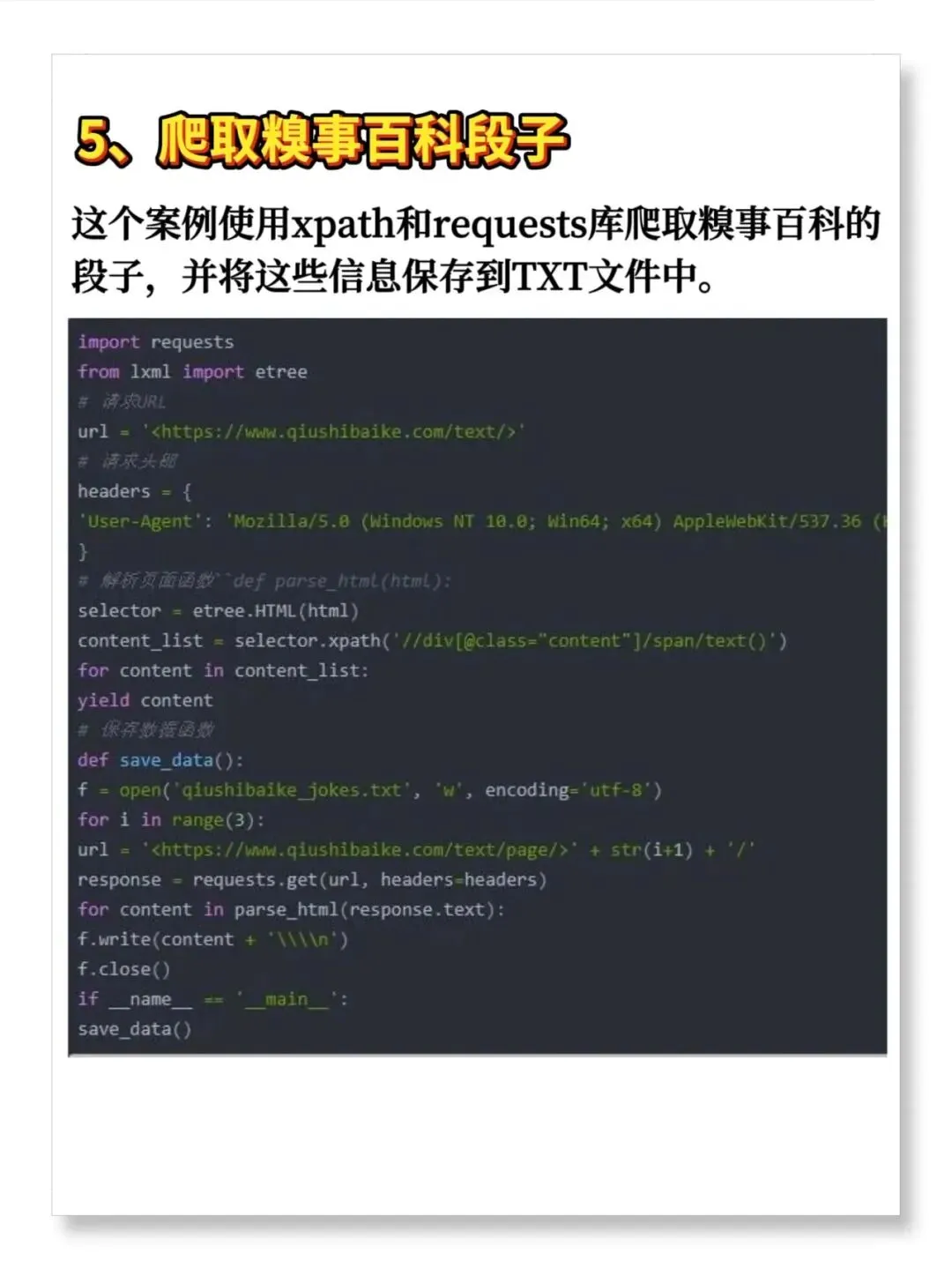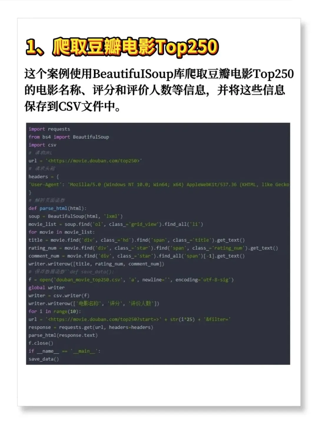 今天整理Python 七个爬虫实战小案例(附项目源码),难度由浅入深,覆盖网页文本、列表、图片、简单接口等常见场景。代码完整可直接运行,边练边理解,新手跟着敲完就能独立写爬虫,快速入门不踩坑!