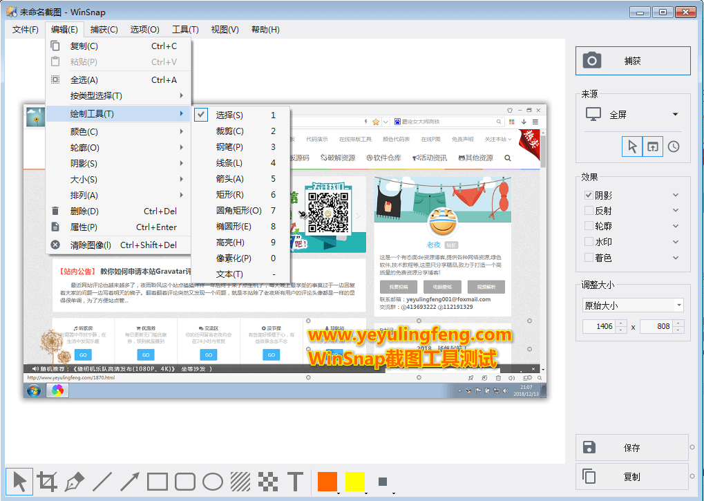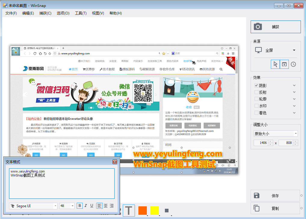 如果在不紧不慢的环境中推荐还是进入WinSnap界面中探索更多功能,因为这不仅仅是一款截图应用,还能将捕获好的图片进行编辑、旋转、裁剪、水印等常规操作,图片处理功能毫不含糊,在各种同类截图工具中还是挺少见的,之前站内推荐过的FastStone Capture虽说也支持图片编辑但不是实时的,需要在截图后再次打开工具进行二次操作略微繁琐,而WinSnap操作就顺畅的多了,加点文字箭头点缀更加方便!