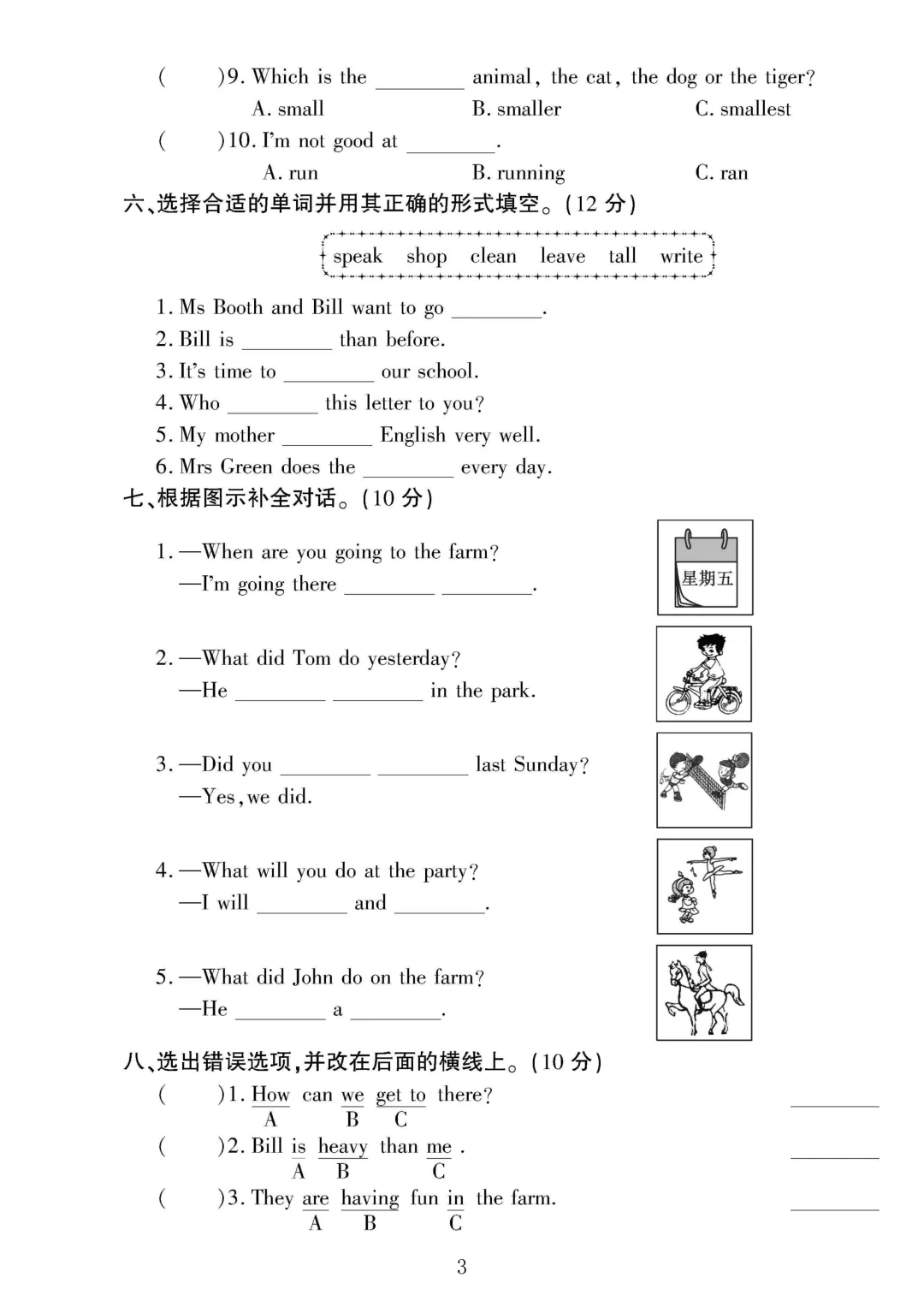 2026春人教PEP版小学六年级下册英语【第一次月考测试卷】可打印