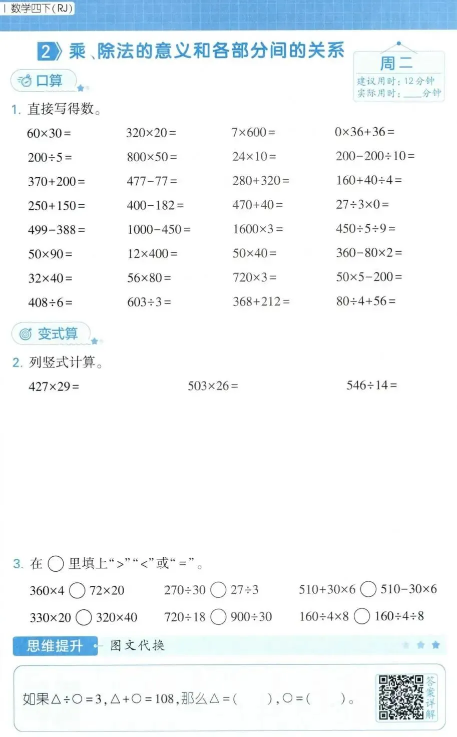 ✅「26春《5星计算达人》数学 人教版 1-6年级下册」