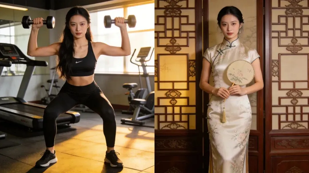 提示词:图中女生穿上优雅的旗袍