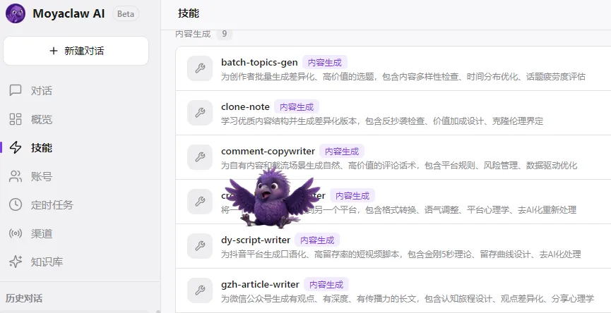 做社交媒体,想话题很头疼,让小龙虾学习过往视频,它能精准总结内容特点,帮你分析市场动态,提供话题建议。