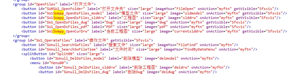 Public swApp As SldWorks.SldWorksSub myftn(Control As IRibbonControl) '回调Dim PrgID As String, PrgArr As VariantOn Error GoTo AppNoOpenPrgID = Control.ID: PrgArr = Split(PrgID, "_")If InStr(PrgID, "SWapp") <> 0 ThenSet swApp = GetObject(, "SldWorks.Application")AppNoOpen: If swApp Is Nothing ThenMsgBox "请先打开SolidWorks!", vbExclamation, "不正经的机械仙人"Err.ClearExit SubEnd IfEnd IfOn Error GoTo PrgEndIf UBound(PrgArr) > 1 ThenApplication.Run PrgArr(1), PrgArr(2)ElseApplication.Run PrgArr(1)End IfIf Not swApp Is Nothing Then Set swApp = NothingExit SubPrgEnd: MsgBox "遇到错误,已中止!", vbExclamation, "不正经的机械仙人"Err.ClearEnd Sub