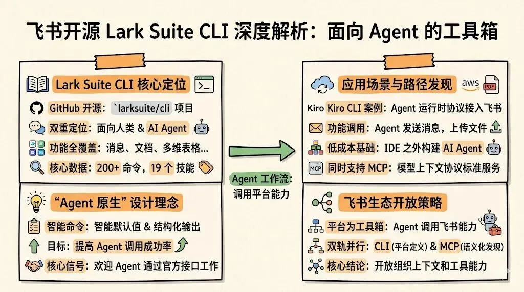 飞书 CLI 值得重视,不是因为它多了一个命令行工具,而是因为它暴露出一个更大的变化:协作平台没有等着被 Agent 绕过去,而是在主动把自己变成 Agent 可以正式工作的执行层和治理层。