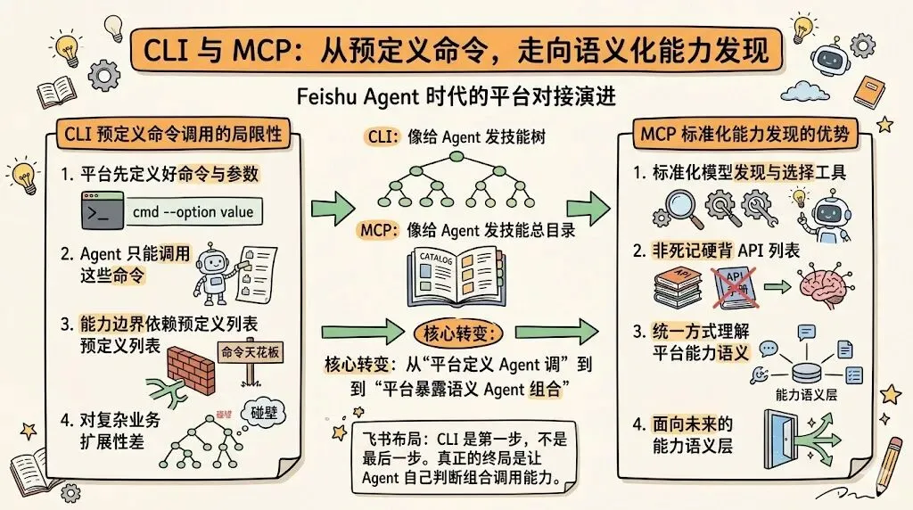 飞书现在同时布局 CLI 和 MCP,其实正说明它也知道一件事:CLI 更像是 Agent 时代的第一步,而不是最后一步。