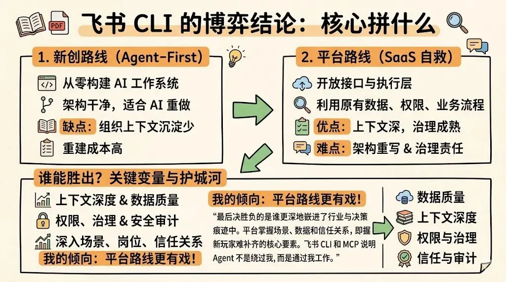 飞书 CLI 说明的,不只是飞书多了一个命令行,而是平台阵营已经想明白了一件事:Agent 不是要绕过我,而是要通过我工作。