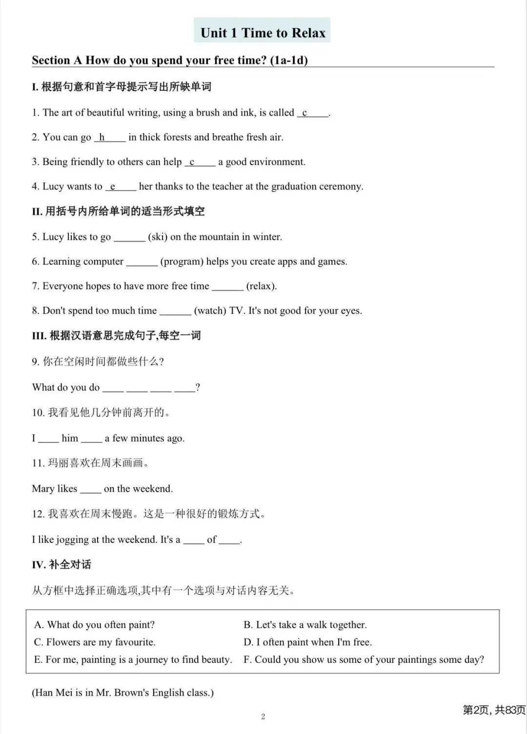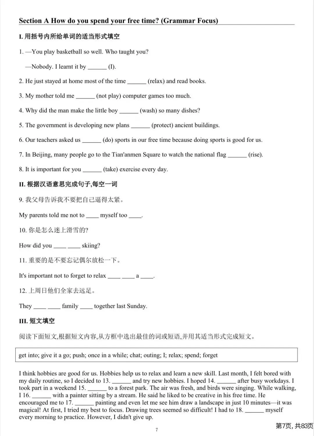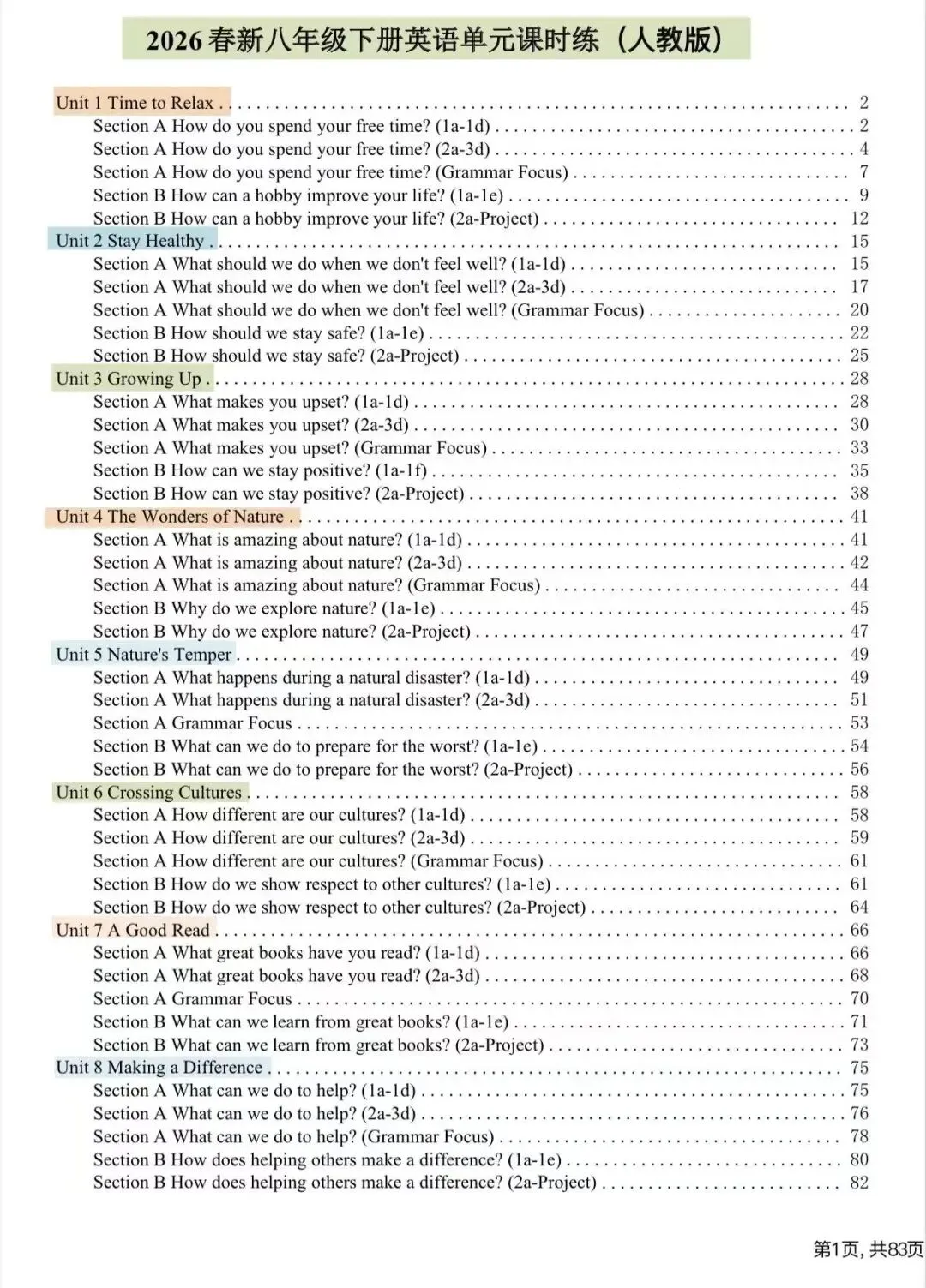 26新人教八年级下英语单元课时练/电子版可打印 以下为部分截图,具体看完整PDF文件 (温馨提示:文末有电子版领取方式) 领取完整电子版: ①:点一点右下角的“赞”和“在看”,感谢支持! ②:点击“关注”,回复资料领取