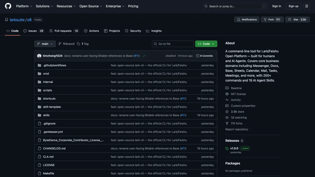 飞书刚刚在GitHub上开源了一个命令行工具——lark-cli。