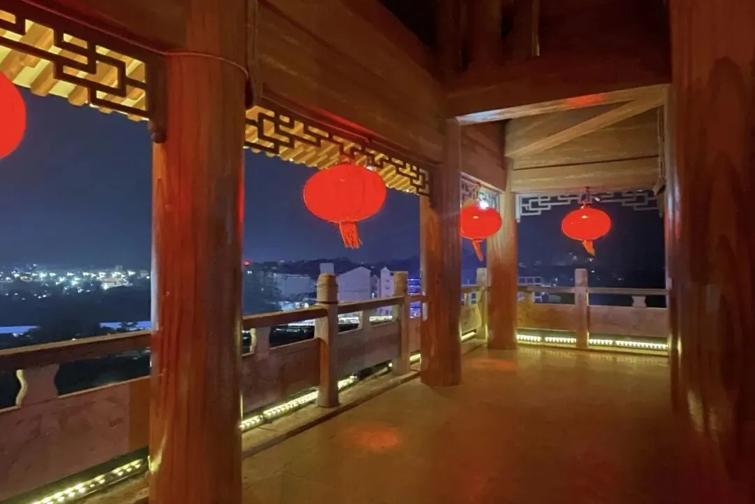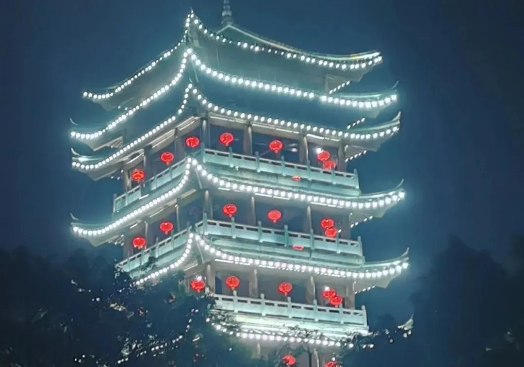 华灯初上,瑶乡古韵绵长。Lights glow at dusk, the ancient charm of Yao hometown lingers.亭台灯火相映,晚风轻拂心间。Lights glow beside pavilions, evening breeze brushes gently over the heart.登临都安阁,俯瞰满城星河。Climb up Du’an Tower, overlooking the city’s sparkling lights like stars.灯火倒映江流,山河尽揽怀中。Lights reflect on the river, holding mountains and rivers warmly in arms.🌿💡🌿💡🌿💡🌿💡🌿💡🌿💡🌿💡