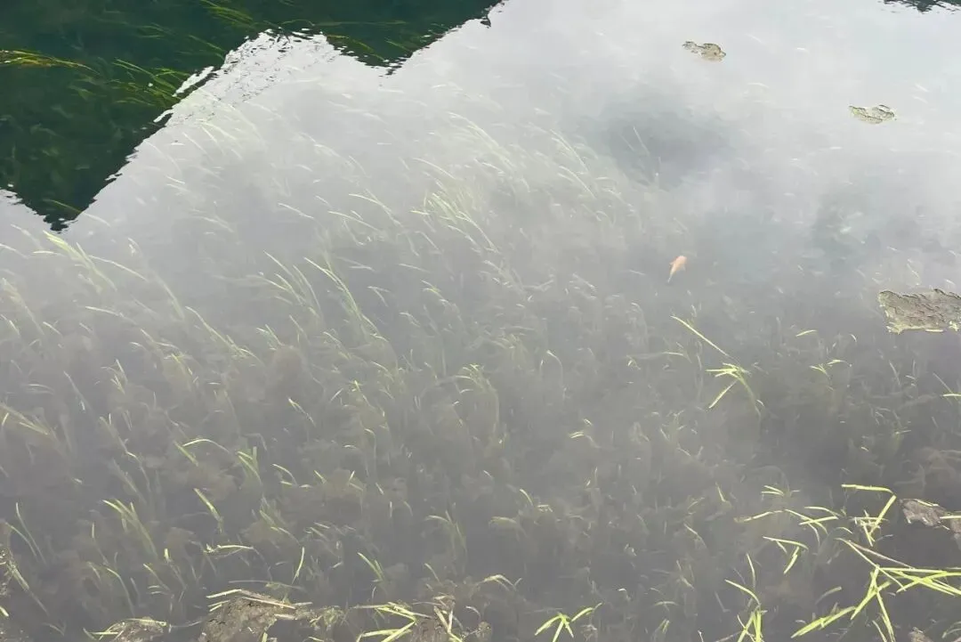 暖阳铺满水岸,天光澄澈。Warm sunshine covers the waterfront, with clear and bright daylight.清风拂过芳草,流水潺潺。Breezes brush the lush grass, with water murmuring gently.漫步湿地小径,远山含黛。Stroll along the wetland trail, distant hills clad in gentle green.未遇海菜花绽,亦有自然清欢。Though water lilies are not in bloom, nature’s quiet joy still lingers.🌿💡🌿💡🌿💡🌿💡🌿💡🌿💡🌿💡