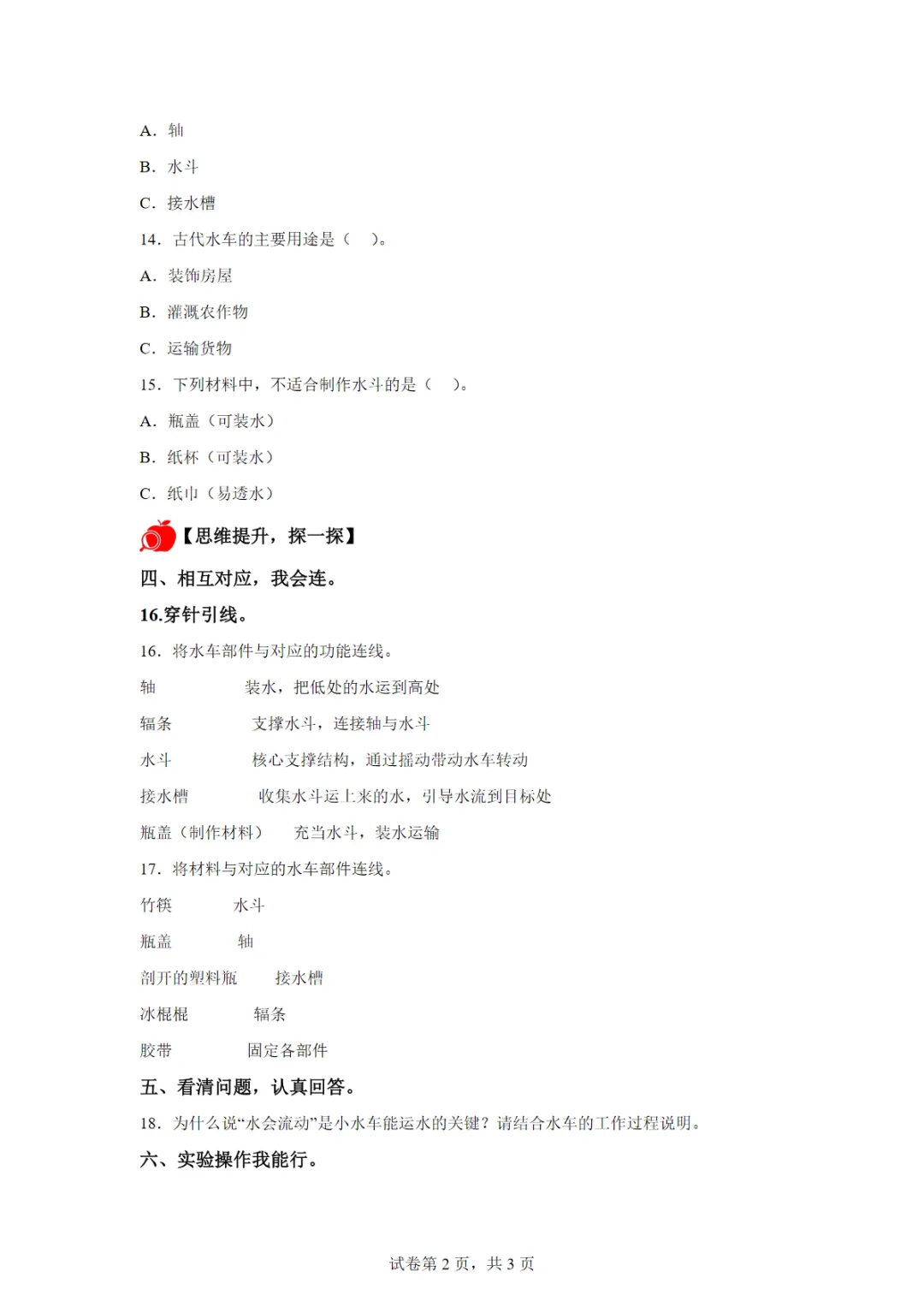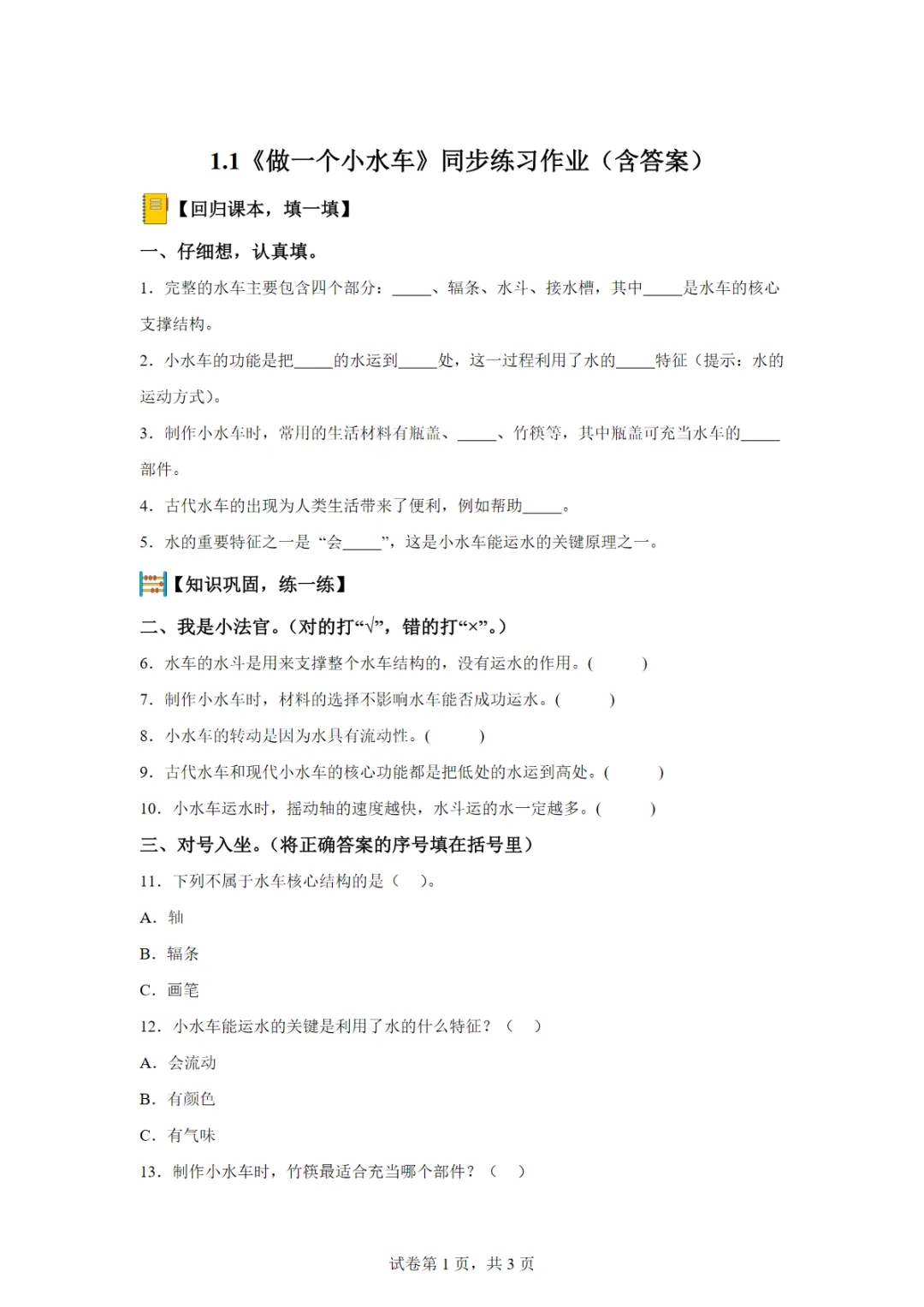 【高清电子版】1.1 做一个小水车(分层作业)科学大象版一年级下册(新教材)