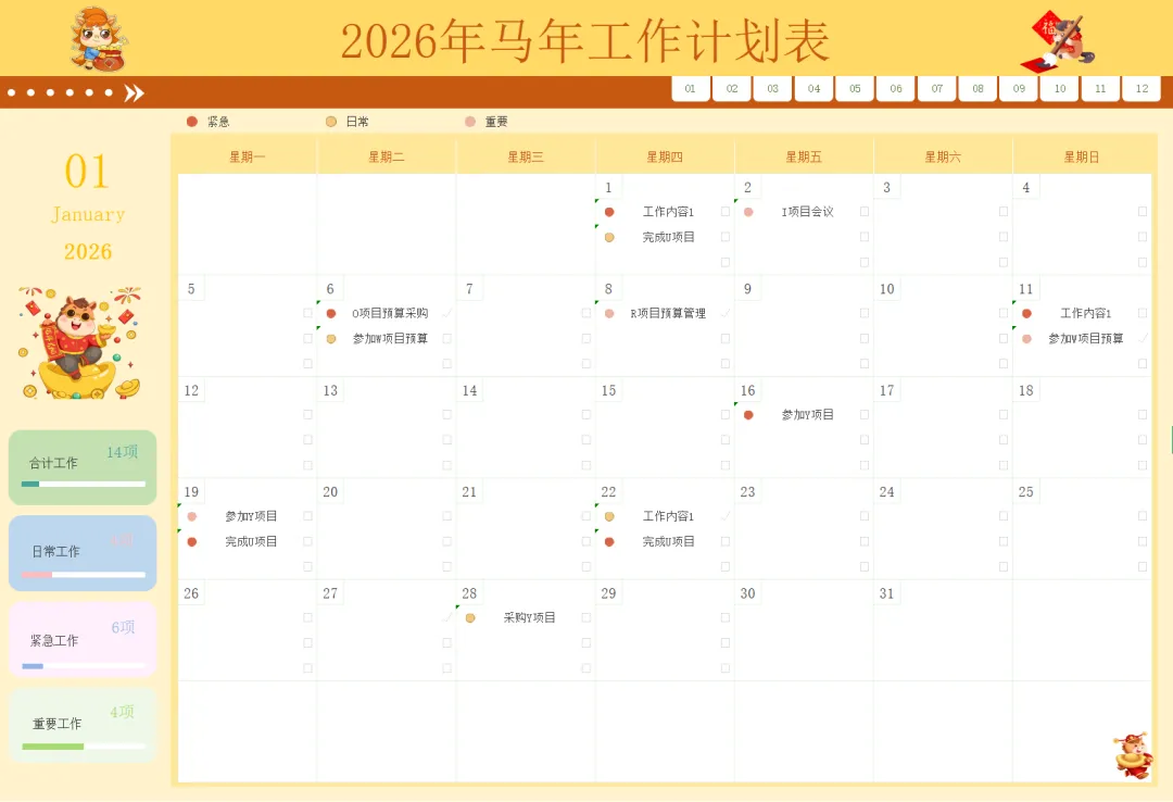 【Excel模板】10套26年马年日历工作计划表模板,免费下载!