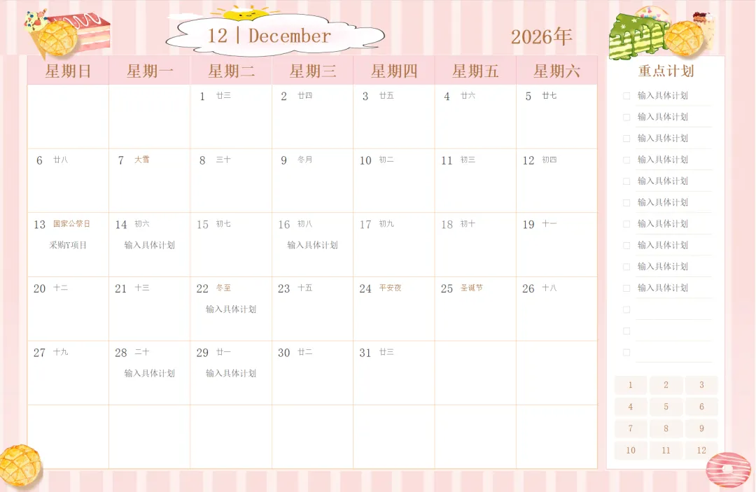 今天小编给大家带来10套日历工作计划表模板,都是Excel格式的,从2026年的1月到2026年的12月都有,而且有些是自带后台函数数据,会自动计算,有需要可以滑到文末下载!