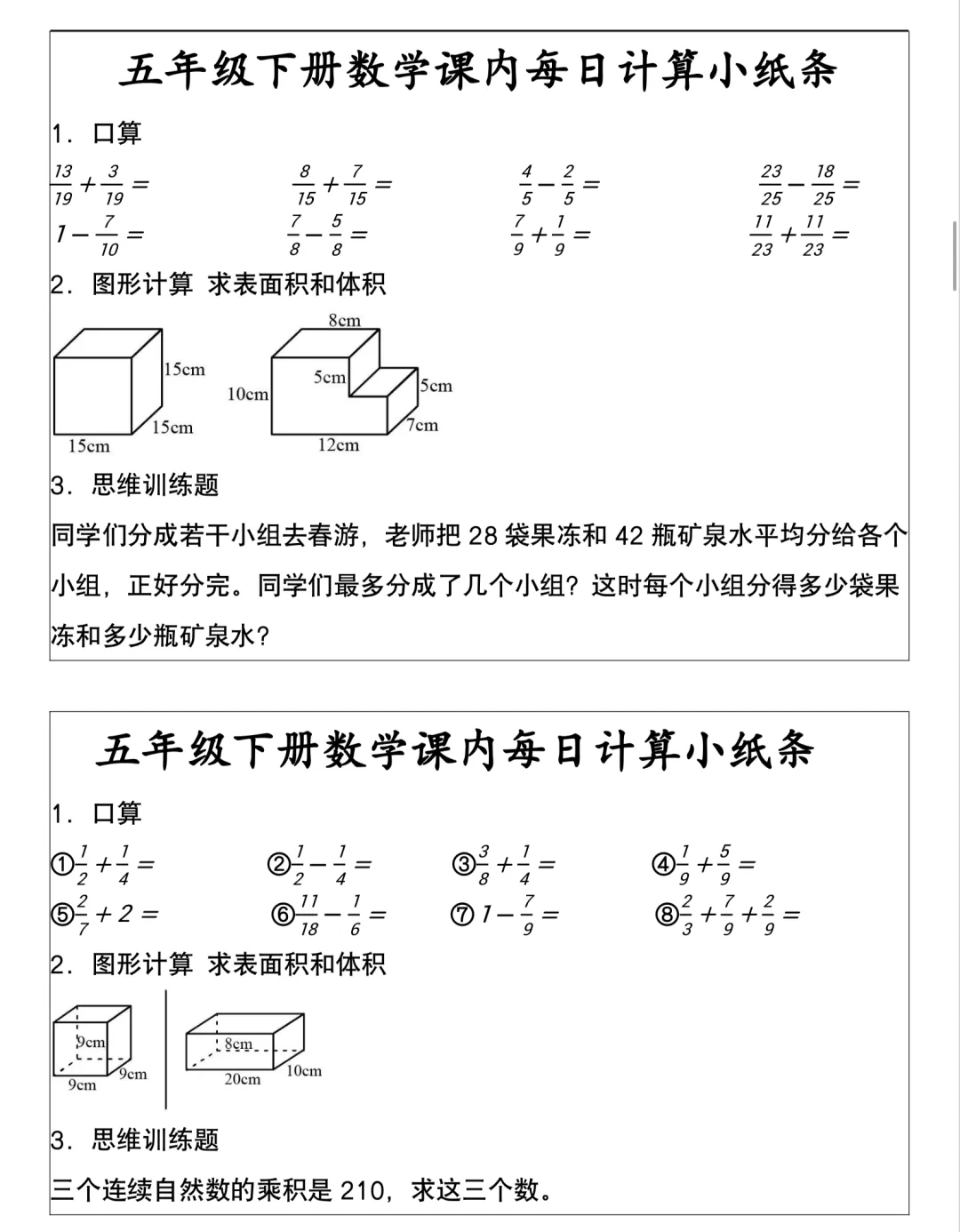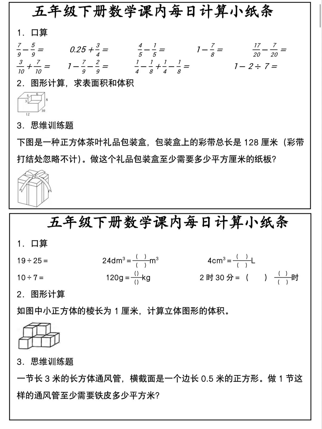 数学学习,计算永远是重中之重!五年级下册数学更是迎来了分数四则运算、小数乘除、解方程、长方体相关计算等一大波重难点计算内容,孩子要是计算速度慢、粗心出错、方法掌握不扎实,数学成绩很容易被拉开差距,家长辅导也总找不到精准的练习素材。