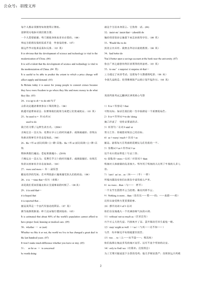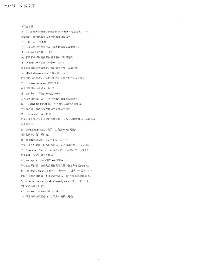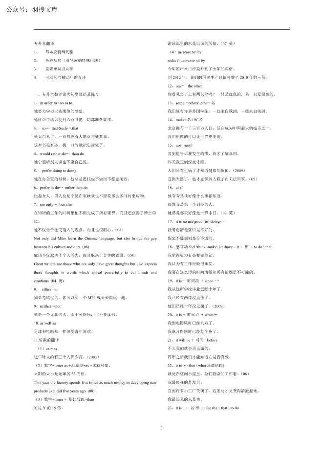【PDF】专升本英语翻译常考点汇总(精校版) 电子版试卷获取,后台回复:试卷