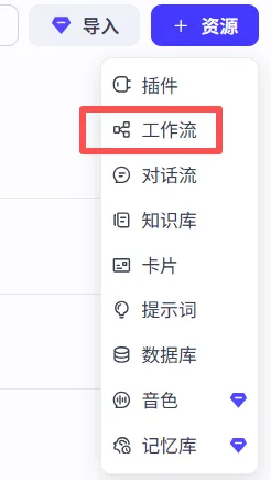 右上角,选择“工作流” |