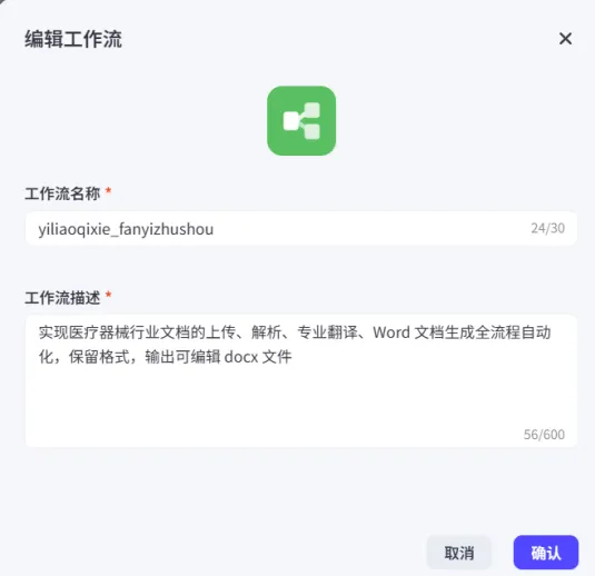 编辑工作流名称和工作流描述 |
