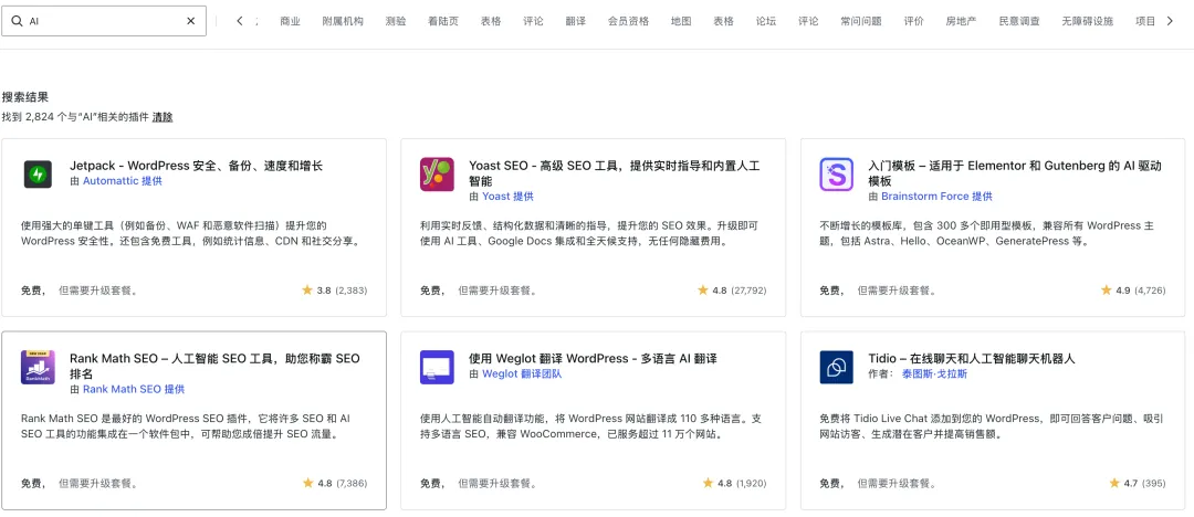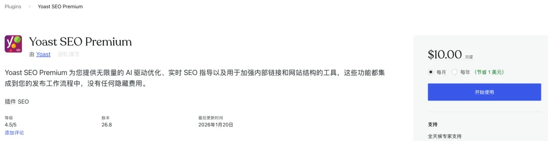 WordPress里AI类的插件有2800多个,这个Yoast SEO插件有2万多个评论,1个月大概10美金。