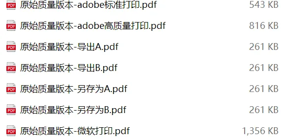 一般分为另存为、导出、打印三种方式,其中另存为、导出会有PDF图片优化开关,开记A,关记作B,而打印也分了很多种。