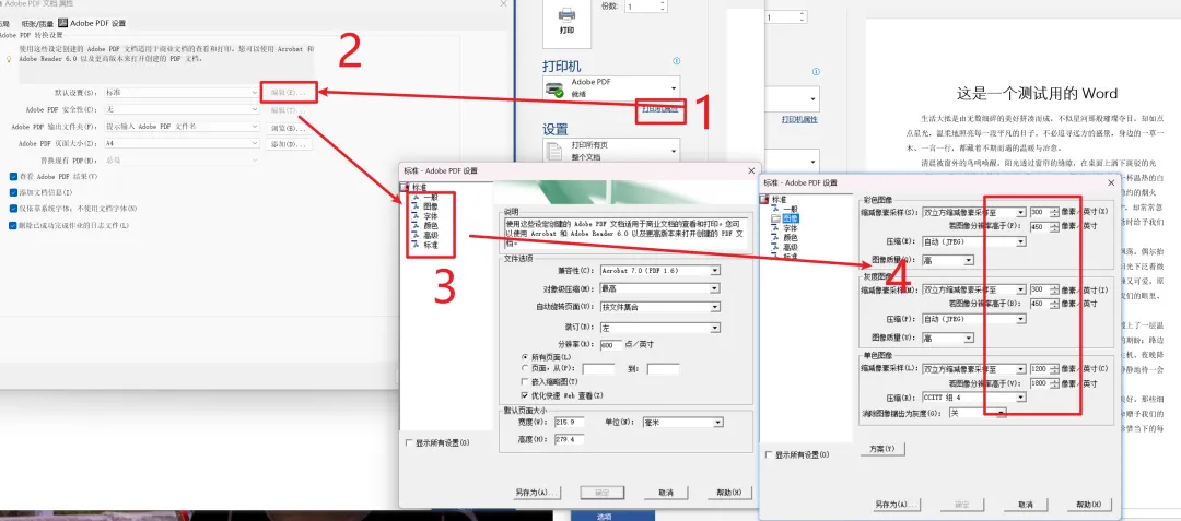 当然,Adobe Pdf通过调整虚拟打印机的设置,可以做出来300MB+的PDF,但是事实质量并不会有多大改观,具体调整的位置如下图所示,感兴趣的可以尝试一下。