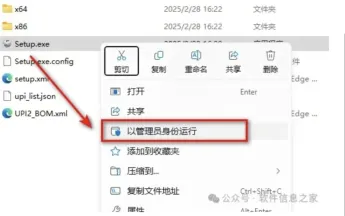 3.找到并选中Setup,鼠标右键选择“以管理员身份运行”