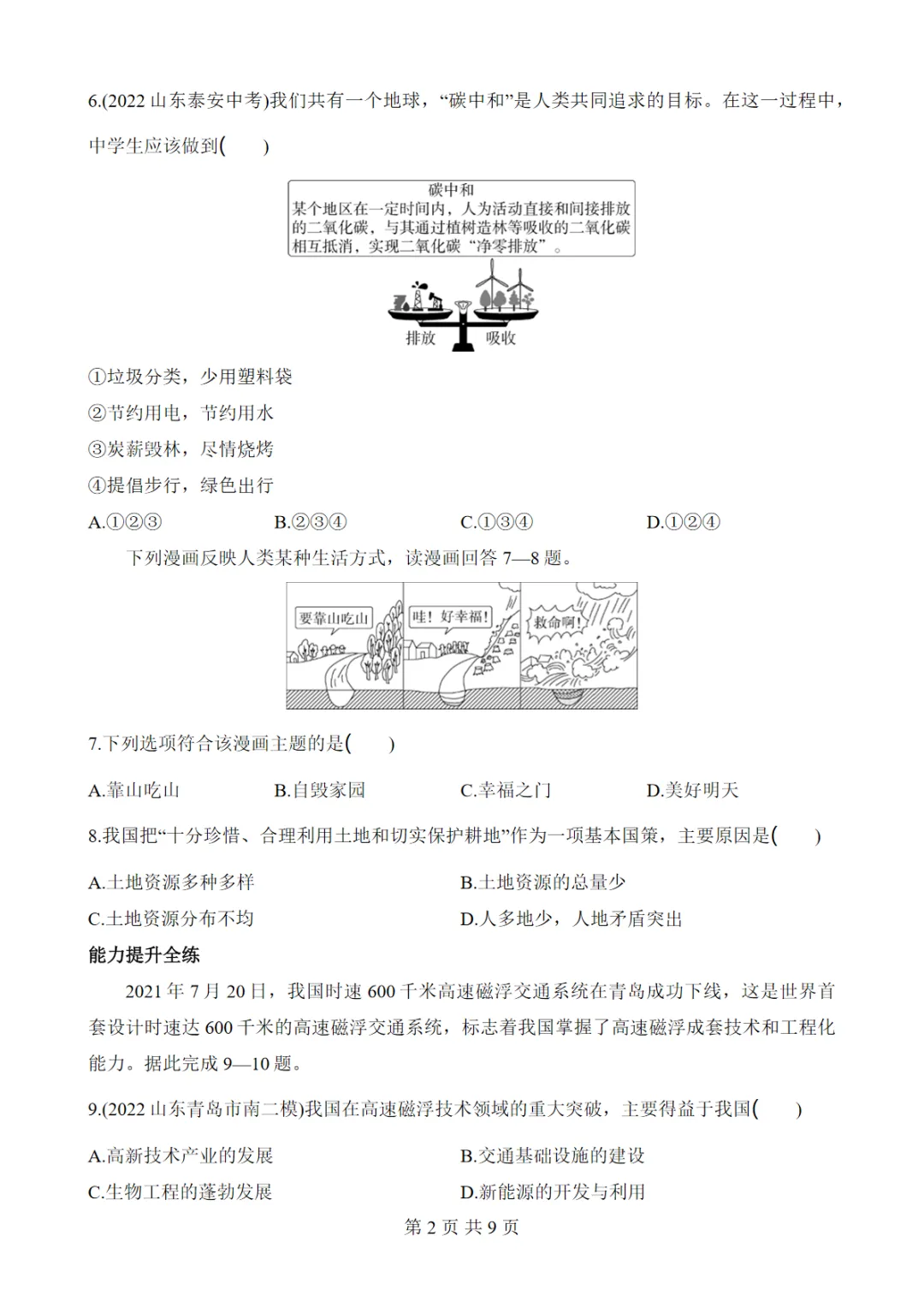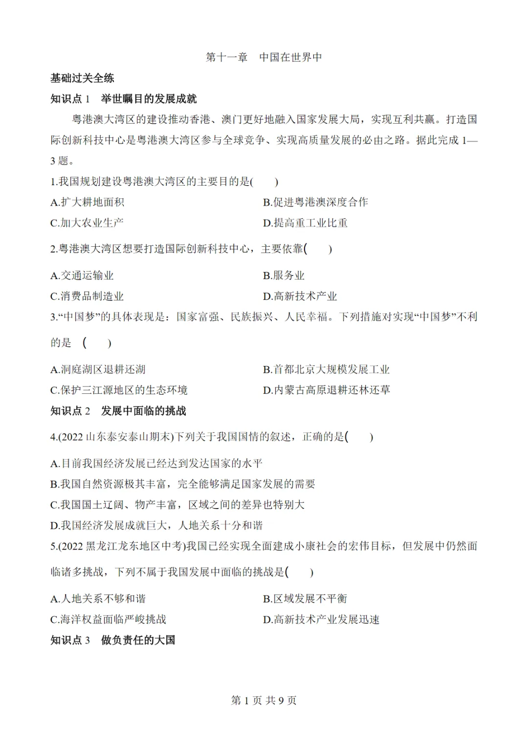 【免费下载】七年级(下)地理11中国在世界中 同步练习(鲁教54版),PDF电子版,可打印,共9页,先保存,以免资源失效